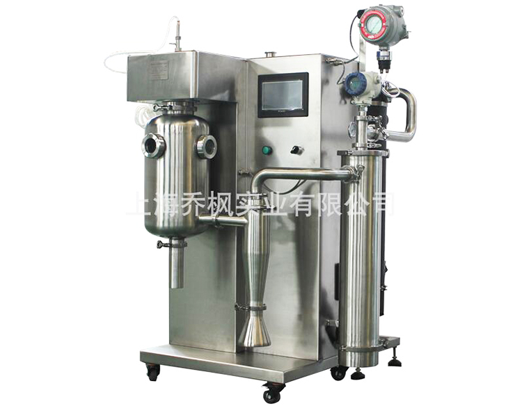 實(shí)驗(yàn)室小型噴霧干燥機(jī)是快速干燥液態(tài)物料的一種干燥設(shè)備,在干燥室中將液體物料經(jīng)霧化后,在與熱空氣的接觸中,水分瞬間汽化,即得到干燥產(chǎn)品,該法能直接使溶液、乳濁液干燥成粉狀或顆粒狀制品,可省去蒸發(fā)、濃縮、粉碎等工序,且得到的顆粒分布均勻。實(shí)驗(yàn)室小型噴霧干燥機(jī)具有傳熱快,水分蒸發(fā)迅速,干燥時(shí)間瞬間的特點(diǎn),且制品質(zhì)量好,溶解性能也好,能改善某些制劑的溶出速率。
