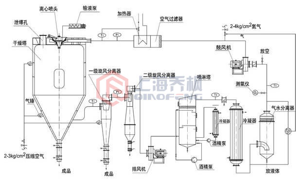系統化技術應用于物料干燥的一種方法。于干燥室中將稀料經霧化后,在與熱空氣的接觸中,水分迅速汽化,即得到干燥產品。該法能直接使溶液、乳濁液干燥成粉狀或顆粒狀制品,可省去蒸發、粉碎等工序。