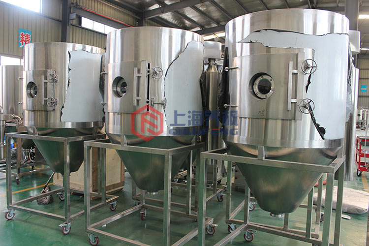 噴霧裝置是離心式噴霧干燥技術(shù)原理在特定物料干燥中的應(yīng)用,也是利用高速離心式霧化器使物料分散成細(xì),與熱空氣充分接觸,完成瞬間干燥,形成粉狀成品的干燥裝置。該干燥設(shè)備是專門(mén)用來(lái)解決中藥浸膏和植物提取液的噴霧干燥機(jī),它有效地解決了原LPG高速噴霧干燥機(jī)在中藥浸膏干燥中出現(xiàn)的粘壁、焦化、收粉率低、產(chǎn)量低等問(wèn)題。