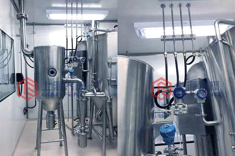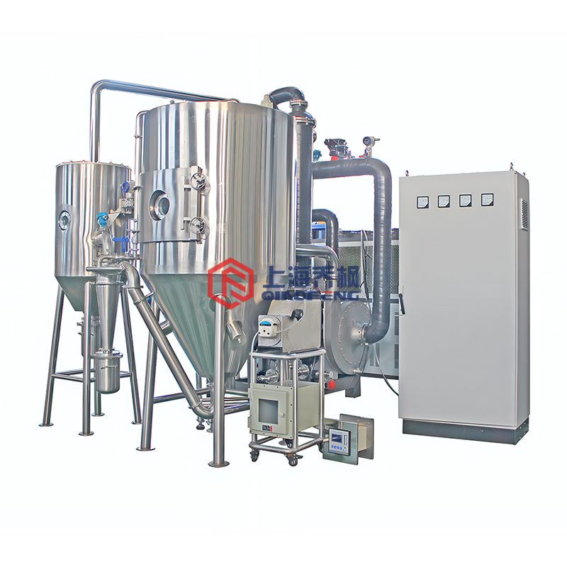 設(shè)備主要由:送料系統(tǒng)、加熱系統(tǒng)、霧化系統(tǒng)、噴霧干燥系統(tǒng)、惰性氣體循環(huán)系統(tǒng)、產(chǎn)品回收系統(tǒng)、冷凝系統(tǒng)組成。