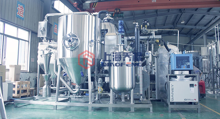 閉式循環噴霧干燥機是一種常見的干燥設備,它的工作原理是將液態物質通過噴嘴噴入干燥室中,并在高溫高壓下蒸發成為氣體,再將這些氣體通過冷凝器凝結成為粉末狀物質。在整個過程中,干燥室內的氣體是通過循環系統反復循環,以達到提高能源利用率和減少排放的目的。