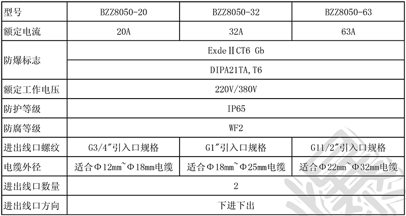 > 適用于ⅡA、ⅡB、ⅡC 類爆炸性氣體環境;