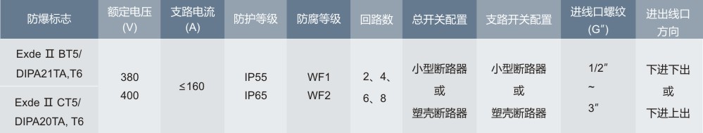 防爆標(biāo)志:Exde Ⅱ BT5/DIPA21TA,T6 Exde Ⅱ CT5/ DIPA20TA, T6
